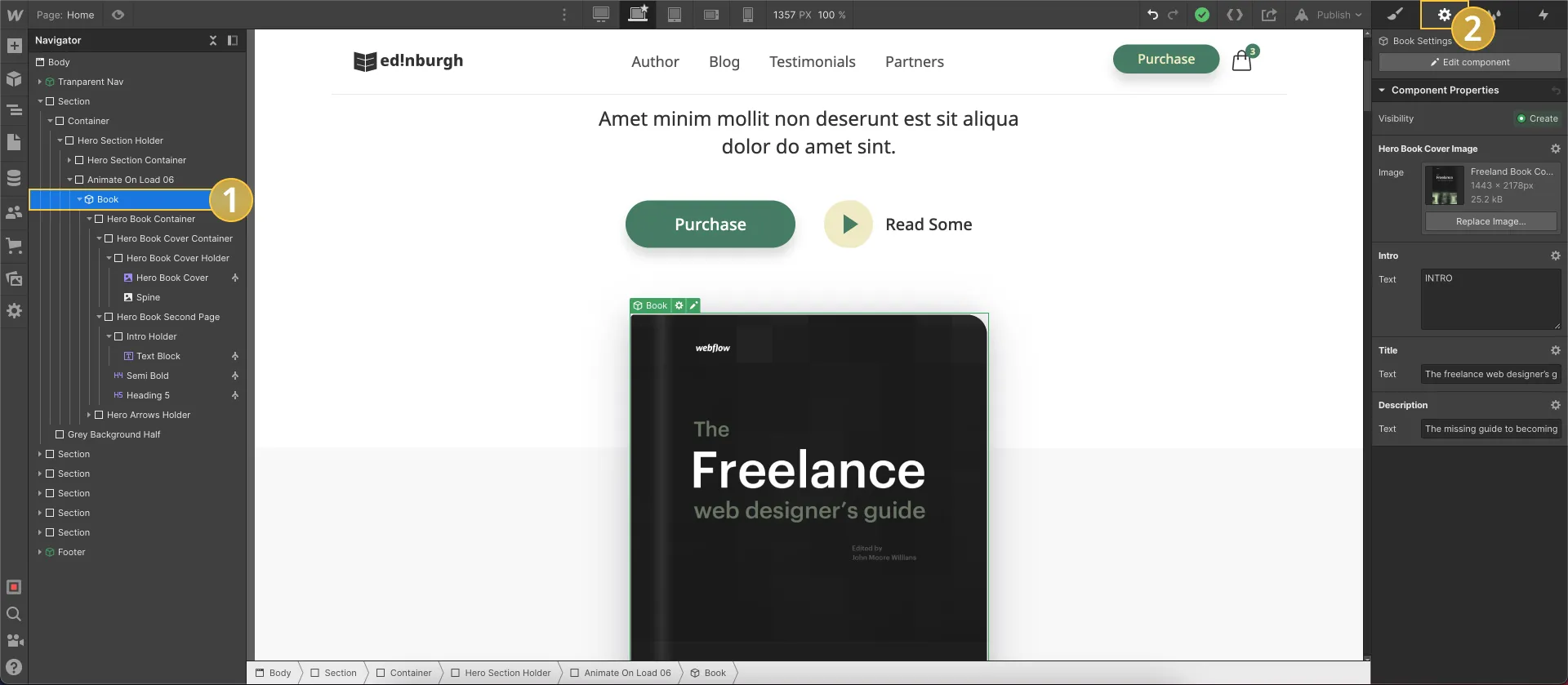 To change the book's content on the home page1. Locate "Book" symbol (1)2. Go to Gear Icon (2)3. Change the content